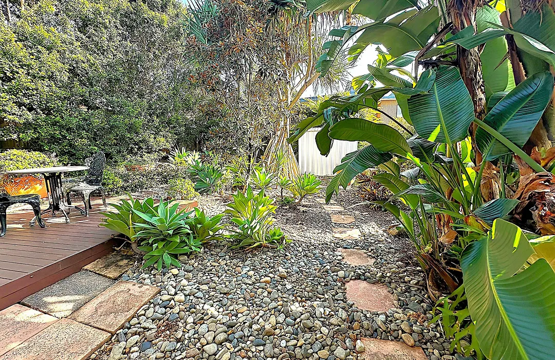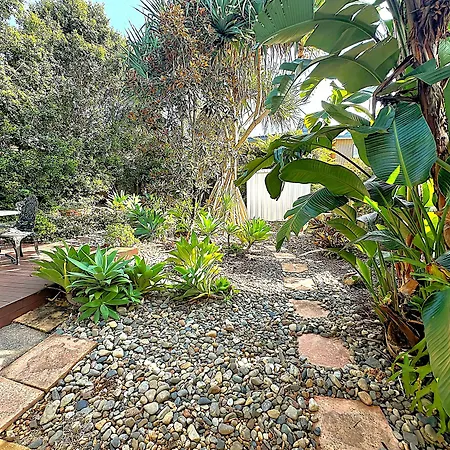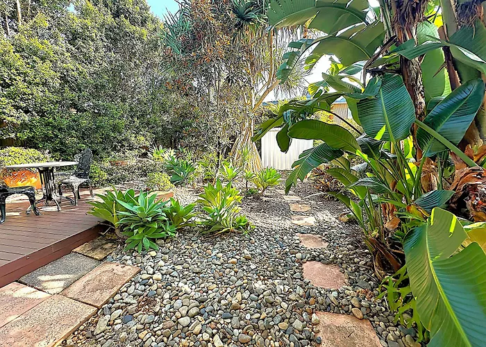 カルンビン・ワイルドライフ自然保護区から歩いて20分離れたところにあるベッドルーム2室のゴールドコースト Castaway In Tugunヴィラには、庭園の景色を望むテラスがあります。